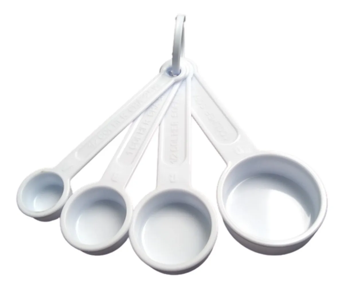 Kit com 4 colheres de medidas em plastico, 2,5ml 5ml 7,5ml 15ml.